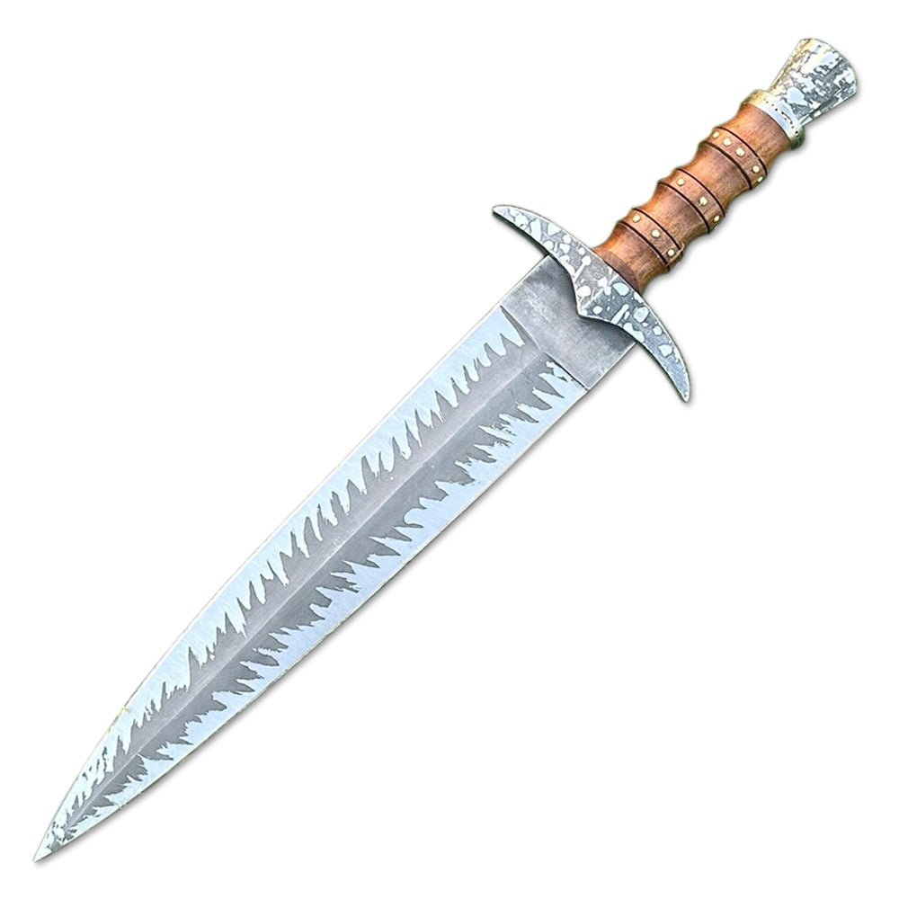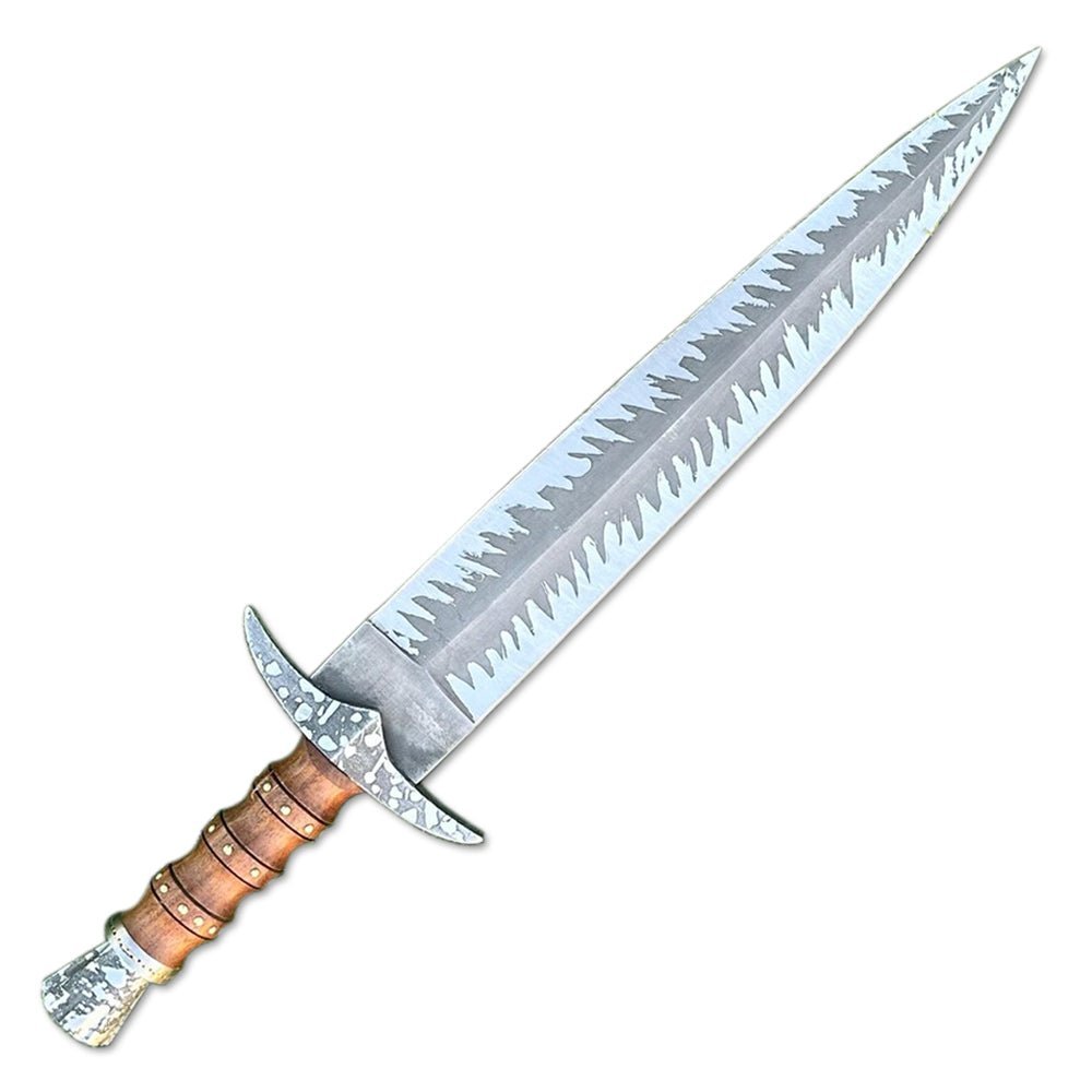 Upgrade your collection with this handcrafted 21-inch Bowie knife, featuring a high-carbon steel blade with intricate etching and a durable rosewood handle. This premium-quality knife is designed for hunting, camping, and collectors, combining strength, functionality, and aesthetic appeal.