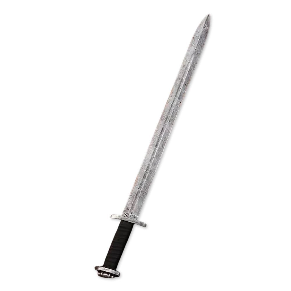 Forged from premium Damascus steel, the blade exhibits a mesmerizing wave-like pattern, achieved through a meticulous process of folding and hammering multiple layers of high-carbon steel. This traditional forging technique enhances the strength, durability, and sharpness of the blade, making it a formidable cutting weapon. With a broad, double-edged design, this sword is built for power and precision, reminiscent of the swords wielded by Viking warriors.