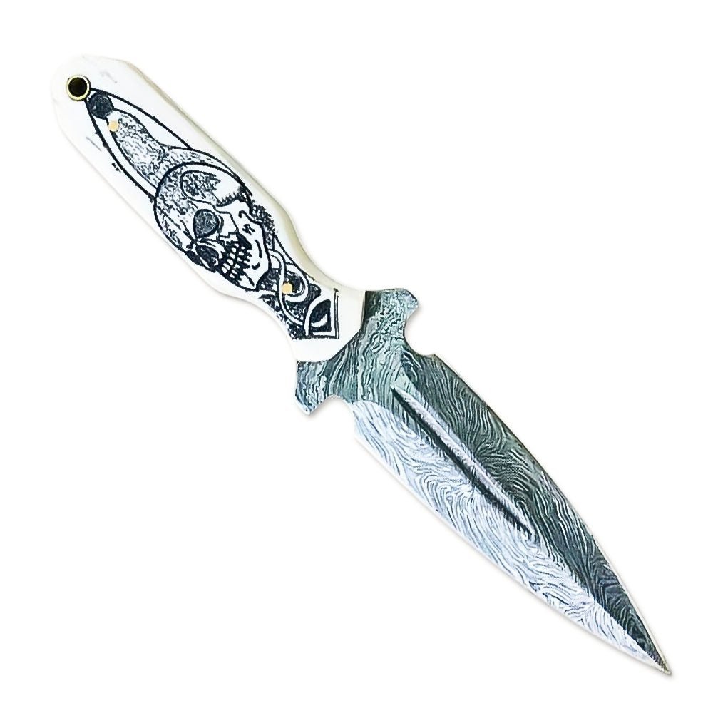 Crafted using the ancient technique of layering and forging high-carbon steel, the double-edged blade features a mesmerizing Damascus wave pattern that’s both beautiful and razor-sharp. Its dual-edge design enhances piercing ability and balance, making it ideal for precise tasks and display.