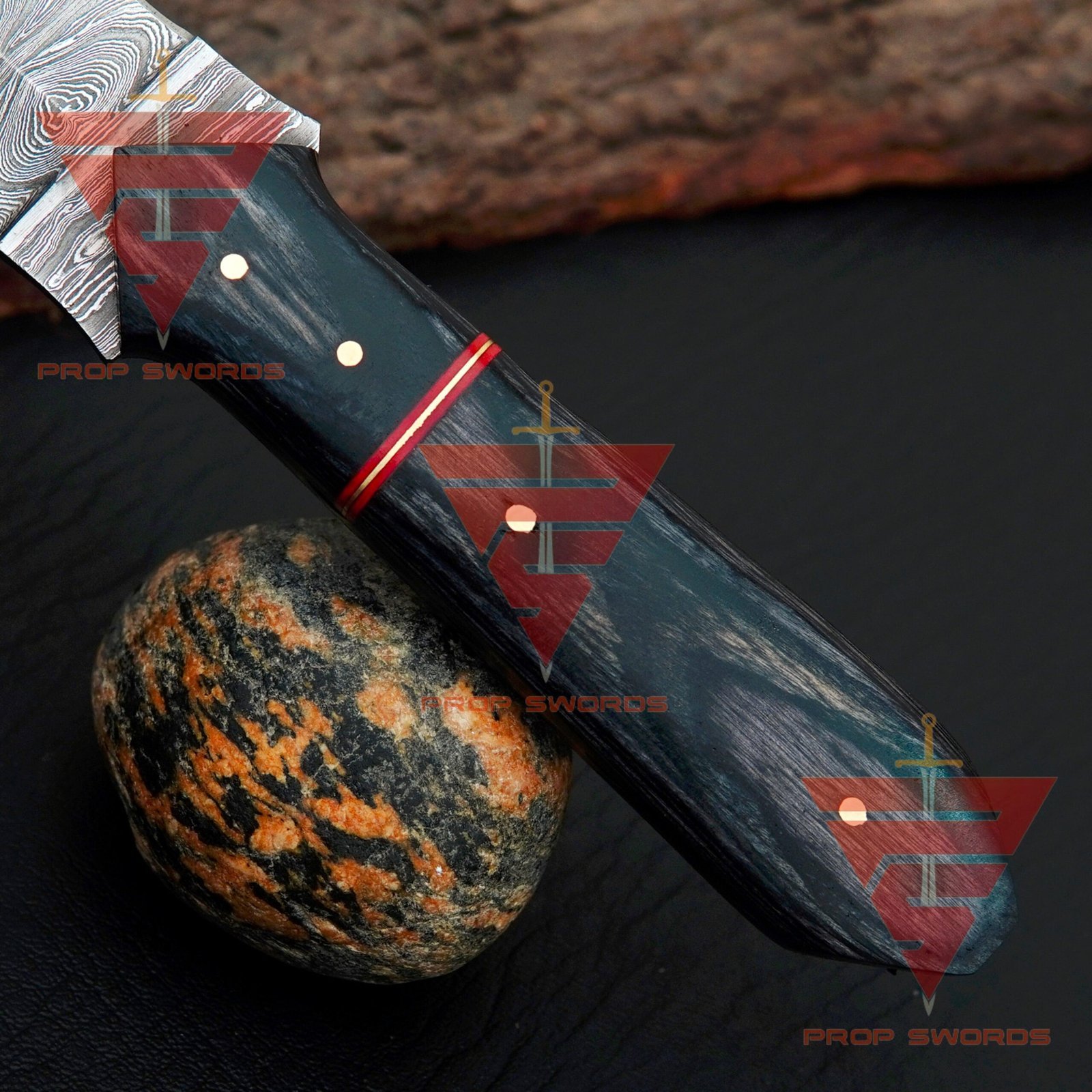 Indulge in the exquisite craftsmanship of our handmade Damascus knife, featuring a stunning handle crafted from luxurious rosewood This meticulously crafted knife is a perfect blend of beauty and functionality, boasting a combination of premium materials and exceptional attention to detail.