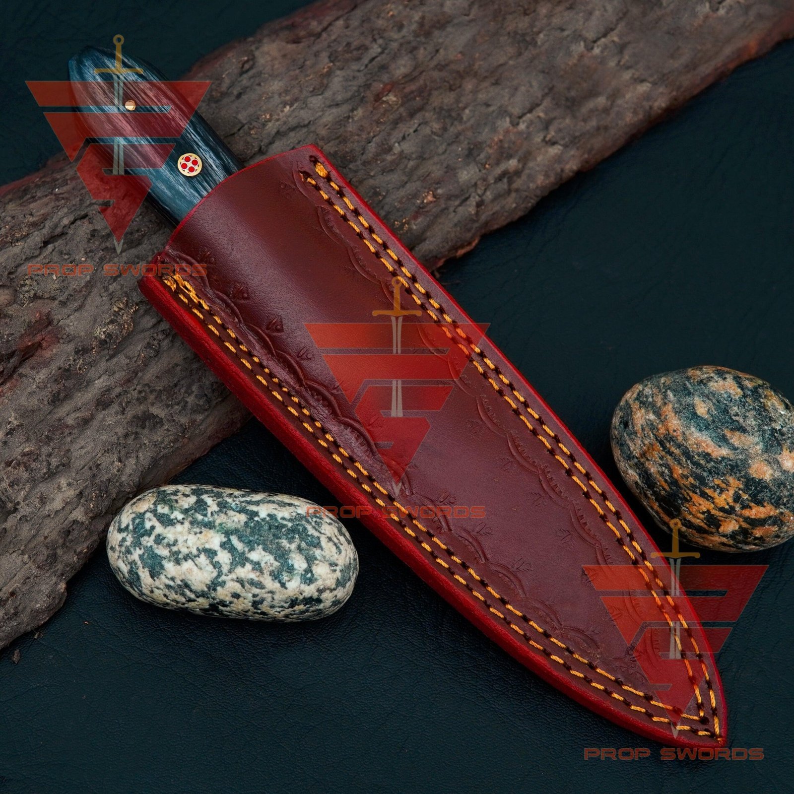 Exquisite Handmade Damascus Knife featuring Rosewood Handle and Pure Leather Sheath – Perfect Gift for Him