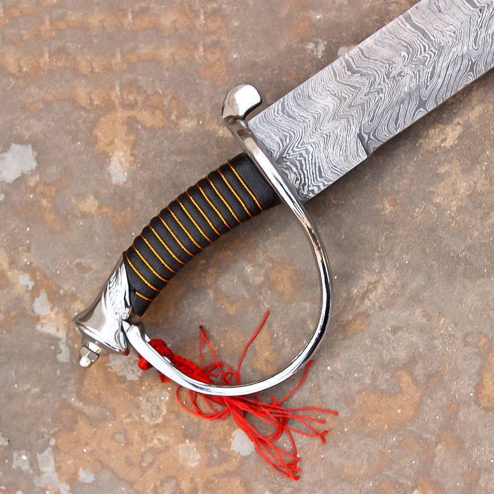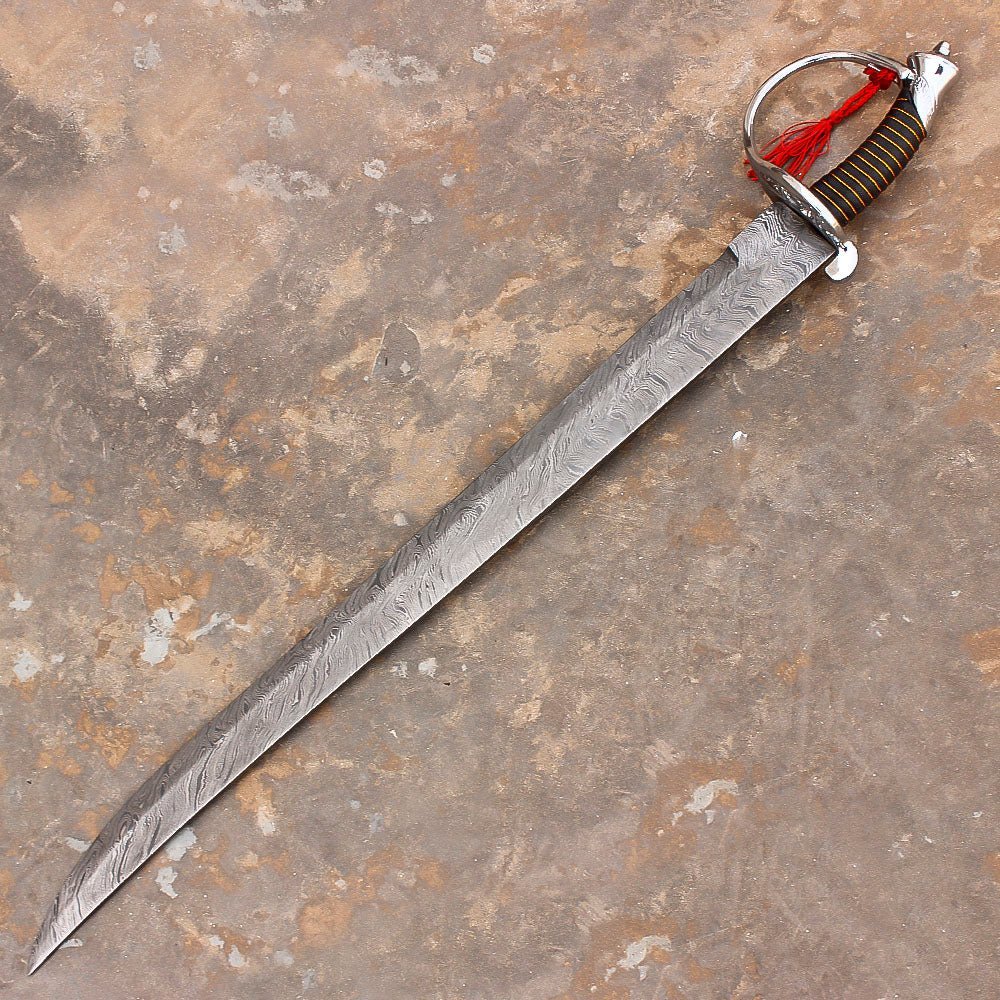 Hand-forged from premium (1095 / 15N20) alloy steels, this Damascus blade features a stunning fire pattern crafted with 352 true layers. With a hardness rating of HRC 57–60, this sword offers excellent strength, edge retention, and striking visual appeal.