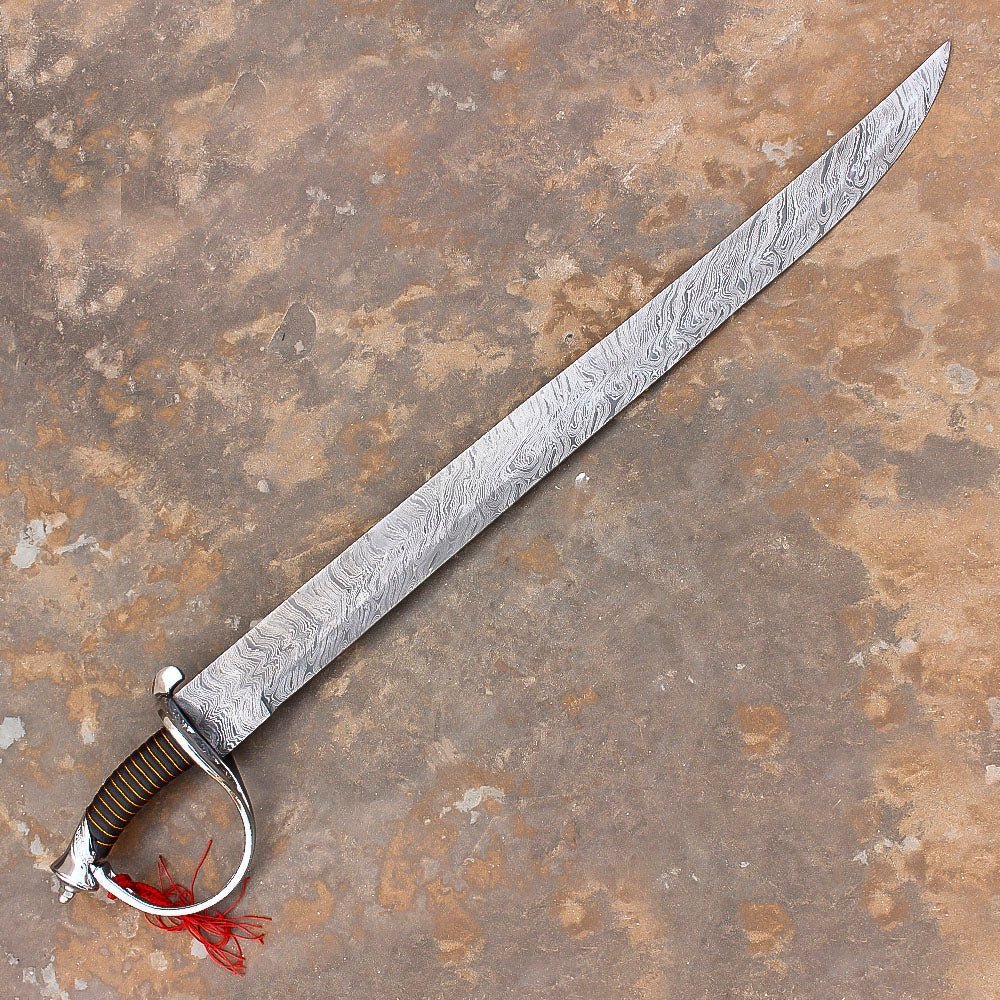 Hand Forged Damascus Steel Rat-Tail Cutlass Sword pirate sword With Leather Sheath