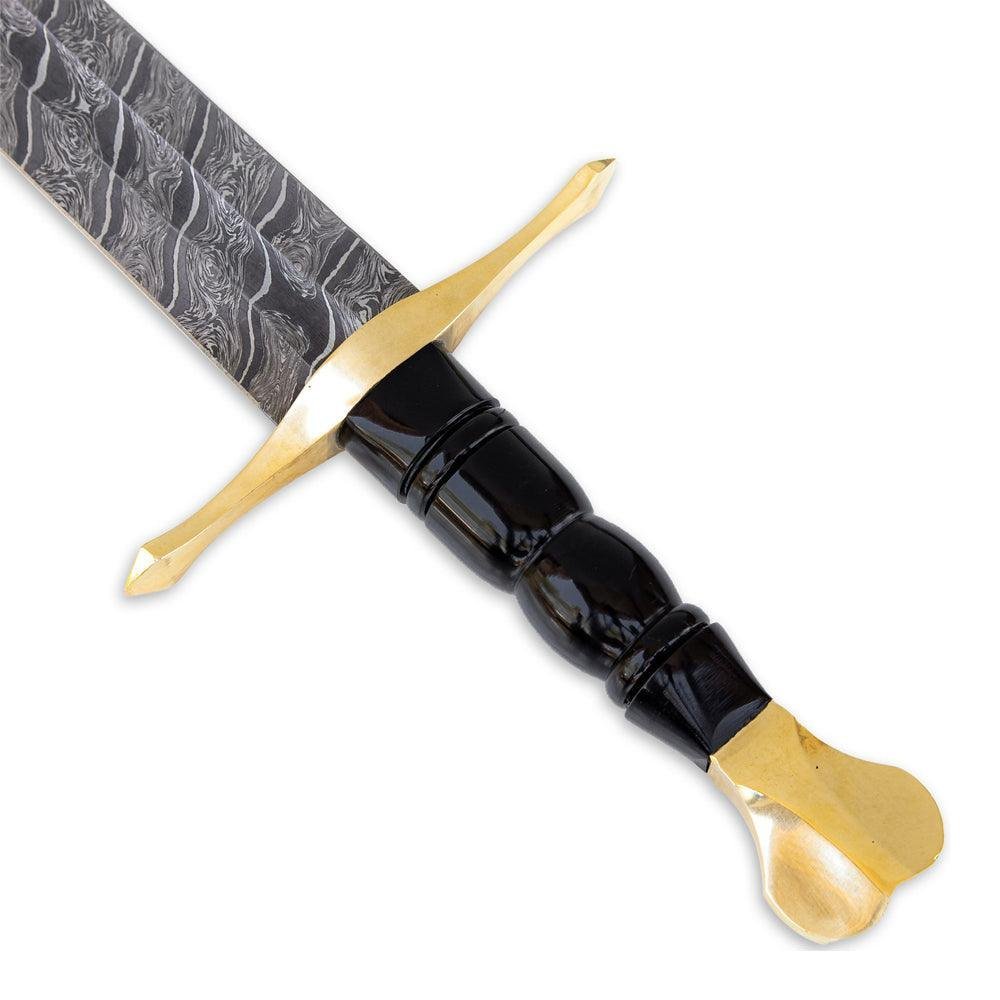 Handmade Damascus steel sword is made of 1095/15N20 that has been folded & layered approximately 400-520 times to create the intriguing wave-like pattern. Damascus Steel is sought after not only for its looks, but for its durability as well as flexibility. The handle is made of Buffalo Horn with Brass Guard & Pommel. Included with leather sheath with back strap.