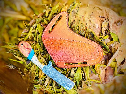 The knife comes with a finely stitched leather sheath that combines elegance with practicality. Designed for easy carrying and protection, the sheath preserves the blade's sharpness while adding a touch of craftsmanship.