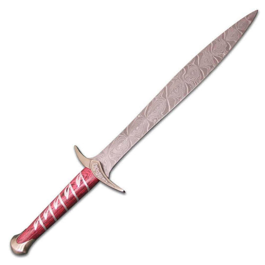 Among these legendary weapons is Orcrist, known as the Goblin-cleaver, wielded by Thorin Oakenshield himself. Forged by the Elves of Gondolin, this blade was feared by goblins and orcs alike, its edge cutting through their ranks with lethal precision. Then there is Sting, the small yet deadly Elven dagger that found its way into the hands of Bilbo Baggins. Though diminutive compared to the swords of warriors, its craftsmanship and magical properties made it a formidable weapon in the right hands, glowing blue whenever danger was near.