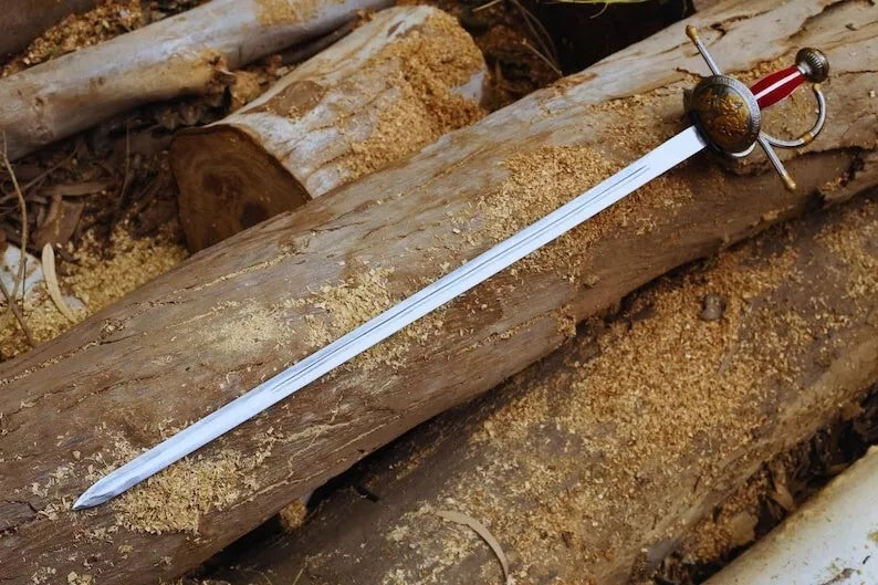 The Hand Forged Double Head Sword is a unique and expertly crafted piece designed with a hidden tang, stainless steel double-edged blade, and a metal handle. Inspired by the Quixote Rapier from the Renaissance era, this Spanish Musketeer sword showcases intricate details and fine craftsmanship. Handmade by experts in Pakistan, this ambidextrous single-handed sword is a reproduction of the original design, featuring a silver color that adds to its historical appeal. Perfect for collectors of swords and sabers, this piece stands out as a truly distinctive and authentic addition to any collection.