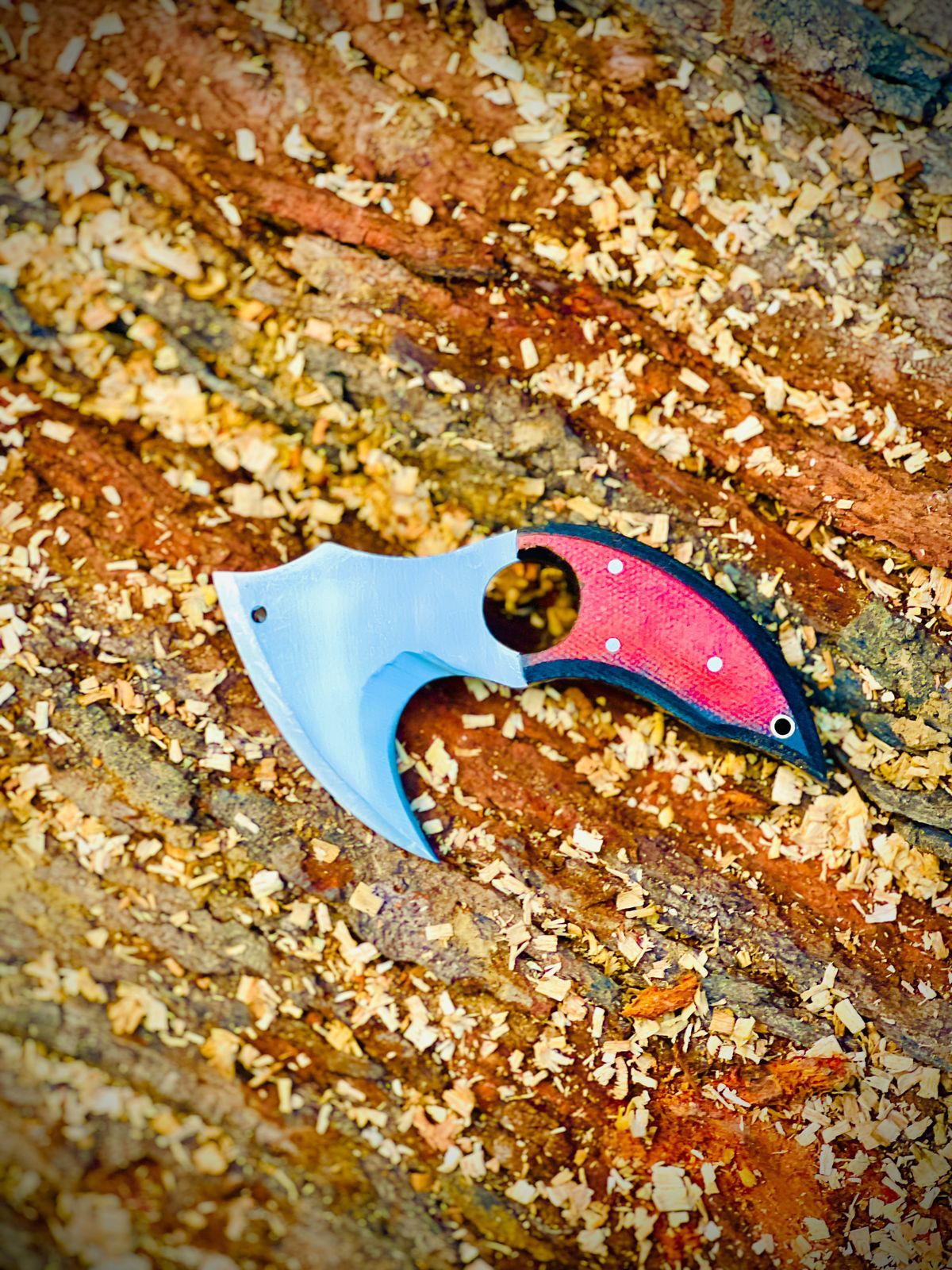 This unique knife comes with a custom-fitted, hand-stitched leather sheath for safe storage and convenient belt carry. Rugged and visually striking, it’s as much a tool as it is a showpiece.