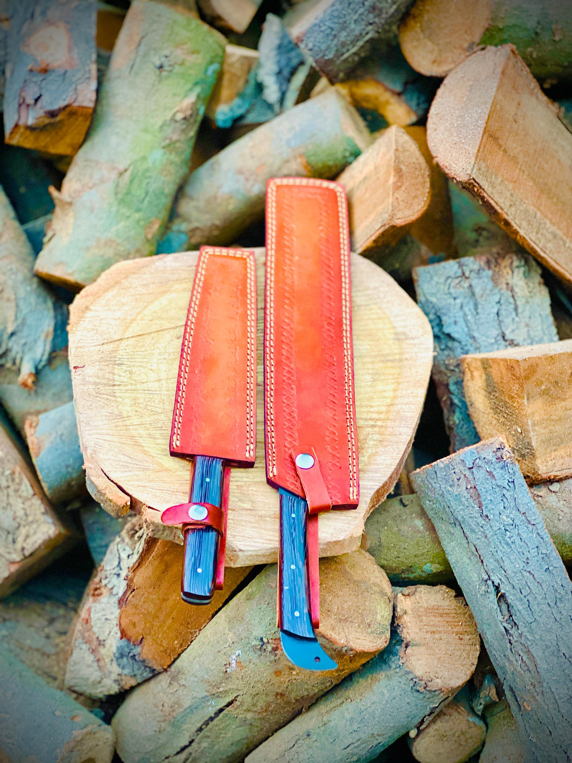 Each blade is hand-forged from high carbon steel, ensuring exceptional sharpness, edge retention, and durability. The full tang construction provides maximum strength and balance, while the ergonomically crafted handles offer a secure, comfortable grip for extended use.